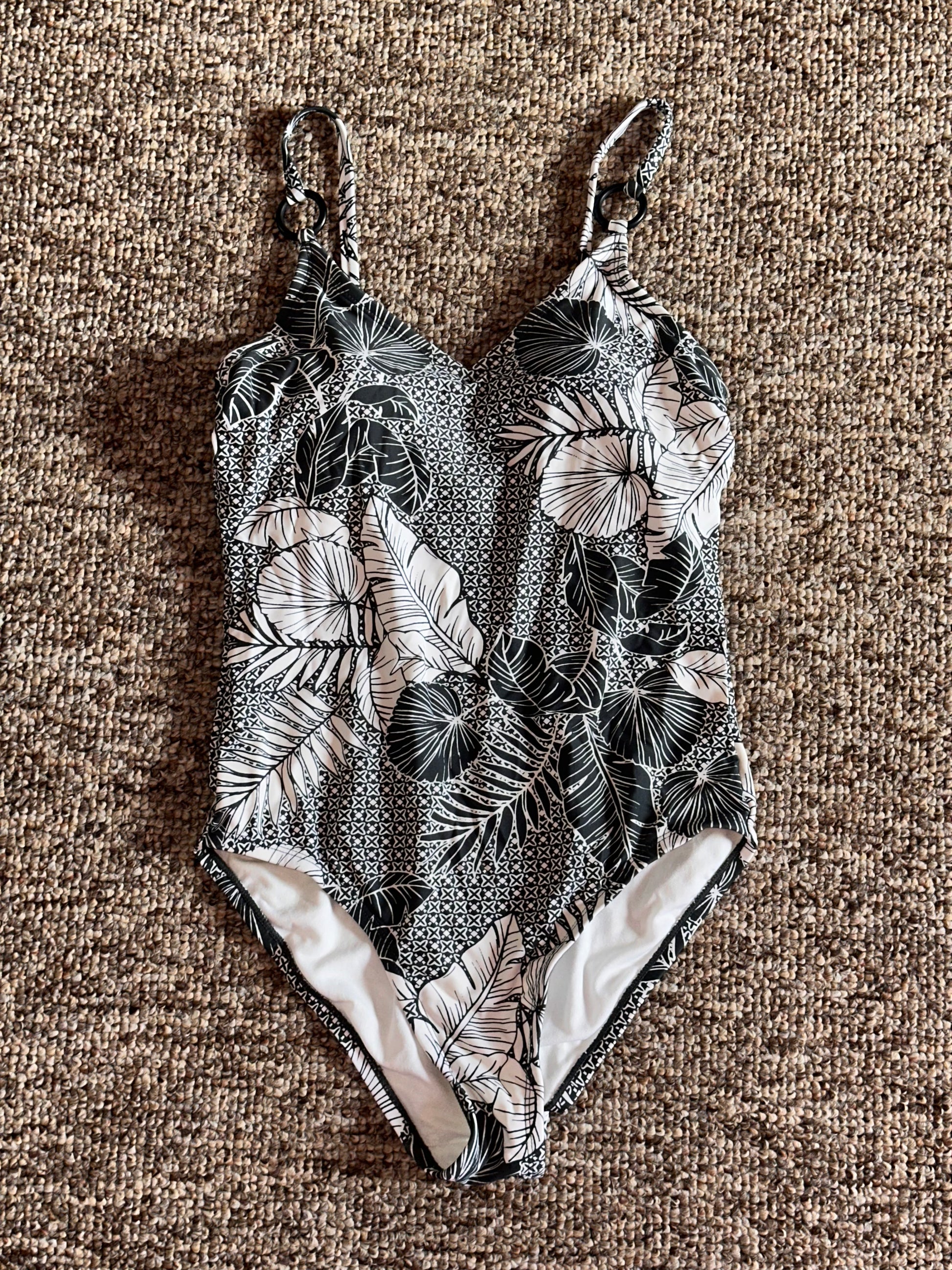 Turn heads in this chic Army Green Tropical One-Piece Swimsuit, designed with a flattering V-neckline and adjustable straps featuring stylish ring accents. The earthy green base paired with the bold tropical floral print gives the perfect mix of classy, natural, and sexy dem